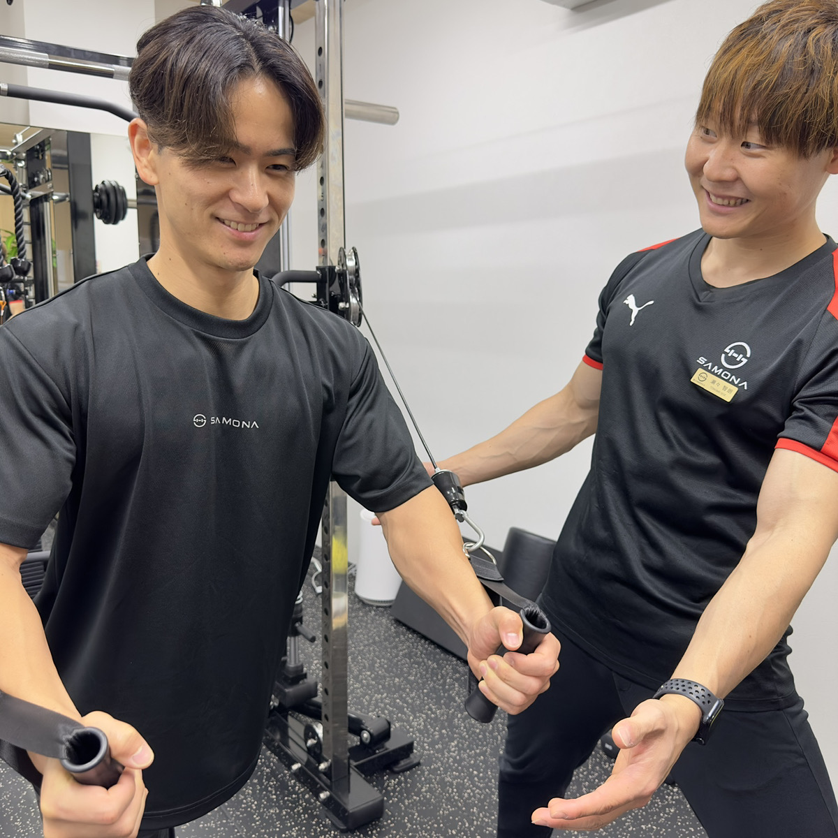 サモーナスポーツ整骨院併設のパーソナルトレーニングジムでは、一人ひとりの目的や体力に合わせてオーダーメイドのトレーニングを行っています。忙しい毎日の中でストレスに負けない体と心をつくりたい方に、最適なサポートをご提供しています。